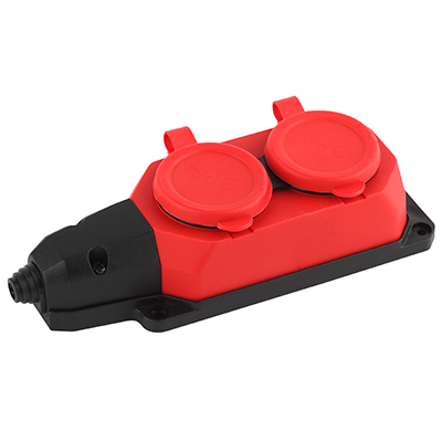 Колодка двухместная K-2e-RED-IP44 "Эра" (16 A, каучук) с заземлением, с защитными крышками, красный