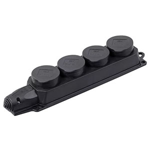 Колодка четырехместная каучуковая РБ34-1-0м IEK PKR64-016-2-K02 "Омега" (16 А, IP44) с заземлением, с защитными крышками