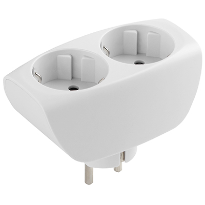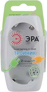 Разветвитель сетевой двухместный SP-2e-W "Эра" (16 А) с заземлением и защитными шторками, белый
