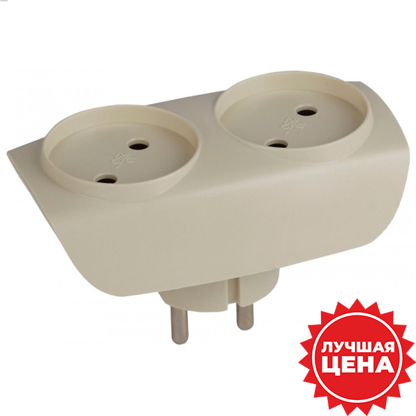 Разветвитель сетевой двухместный SP-2-I "Эра" Б0017017 (16 А), слоновая кость