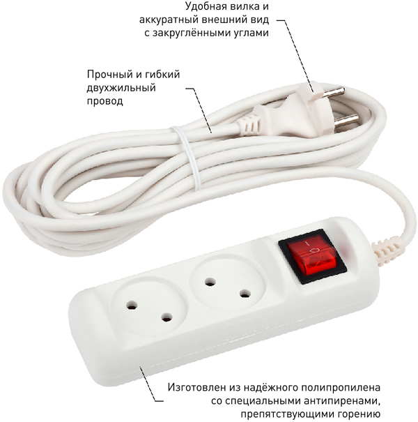 | Тип изделия | удлинитель бытовой без заземляющих контактов, без защитных шторок |