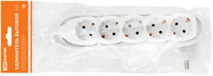 Удлинитель пятиместный 1,5 м TDM SQ1303-0020 (ПВС 3 х 1,0 кв.мм) с заземлением, белый