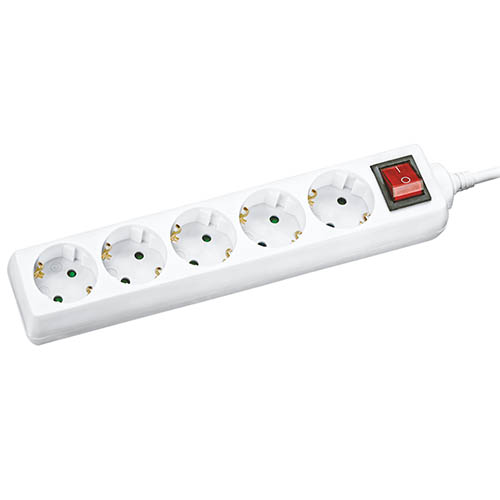 Удлинитель пятиместный Navigator NPE-S-05-500-ESC-3x0.75 с/з с выкл. 5 гн. 5м (10 А, ПВС 3 х 0,75 кв.мм) с выключателем, белый