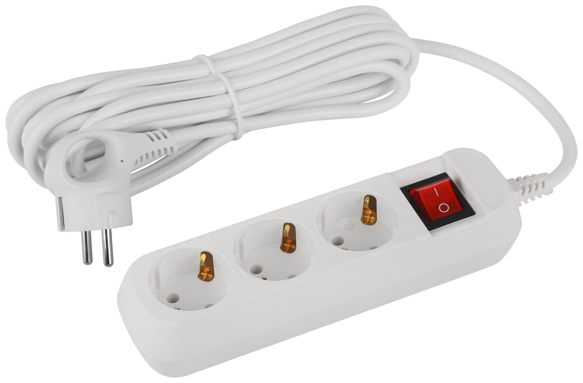 Удлинитель электрический Эра GREENLINE UDL-16-350-ES с заземлением, с выключателем, на 3 розетки, провод 5м ПВС 3x1мм2. Рассчитан на максимальную мощность 16А/3500 Вт. Удлинитель станет Вашим надежным помощником, если любимые электроприборы находятся далеко от розеток. Корпус выполнен из ударопрочного и негорючего пластика (полипропилен). Вилка обеспечена кольцом для удобного извлечения ее из розетки. Модель удлинителя на 16А позволяет подключить бытовые приборы общей нагрузкой до 3500Вт.