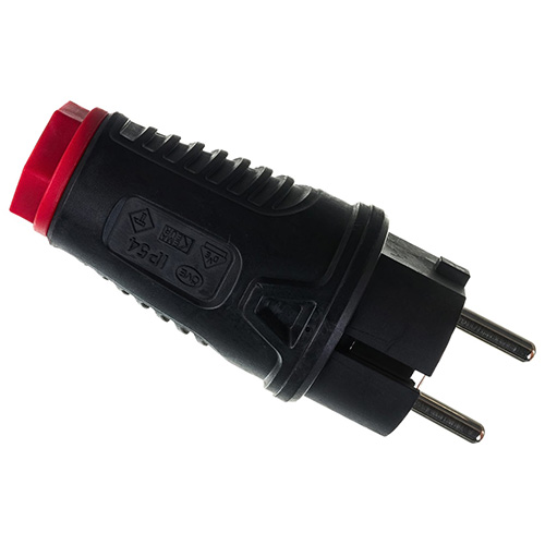 Вилка кабельная прямая PCE 0511-sr Taurus2 (16 А, 250 В, резина, IP54) с заземлением, черный / красный