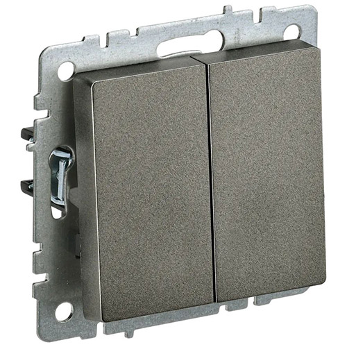 Выключатель двухклавишный проходной IEK ВС10-2-6-БрТБ Brite (10 А, IP20) скрытой установки, темная бронза