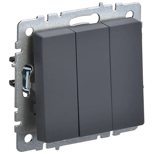 Выключатель трехклавишный IEK ВС10-3-0-БрГ Brite (10 А, IP20) скрытой установки, графит