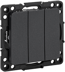 Выключатель трехклавишный EKF EZV10-024-10 "Стокгольм" (10 А, IP20) скрытой установки, черный