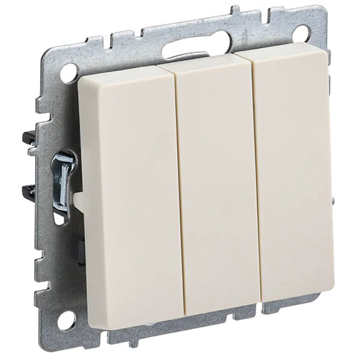 Выключатель трехклавишный IEK ВС10-3-0-БрКр Brite (10 А, IP20) скрытой установки, бежевый