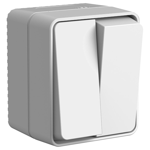 Выключатель двухклавишный Systeme Electric ATN543051 AtlasDesign Profi54 (10 А, IP54) открытой установки, серый
