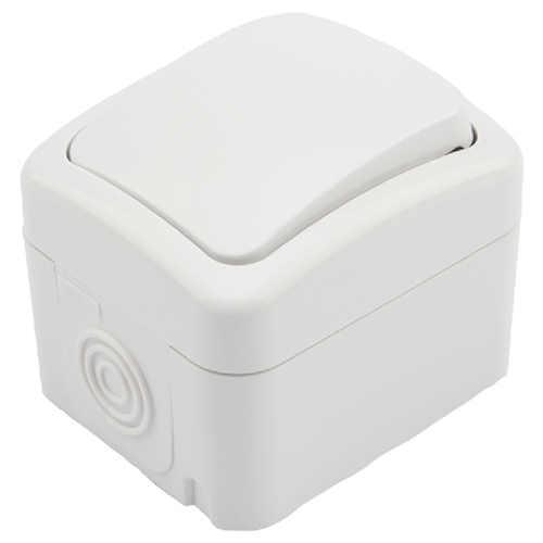 Переключатель проходной одноклавишный Kranz KR-78-0603 Mini OG (10 А, IP54) открытой установки, белый