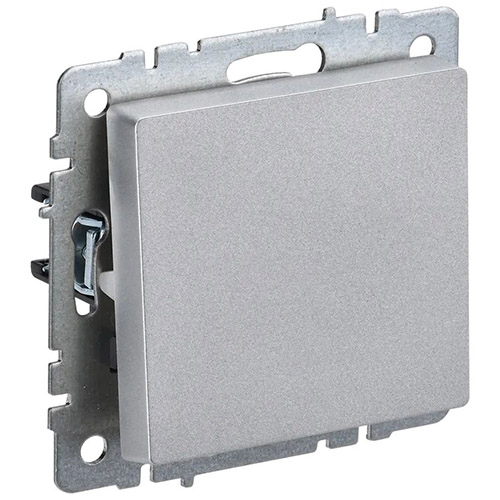 Выключатель одноклавишный проходной IEK ВС10-1-6-БрА Brite (10 А, IP20) скрытой установки, алюминий