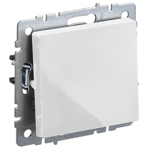 Выключатель одноклавишный перекрестный IEK ВС10-1-3-БрБ Brite (10 А, IP20) скрытой установки, белый