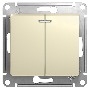 Выключатель двухклавишный Schneider Electric GSL000253 Glossa (10 А, IP20) скрытой установки, с подсветкой, бежевый