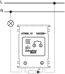 * АХ означает способность выключателя работать с реактивной нагрузкой номинальным током 10 А, то есть с люминесцентными светильниками.