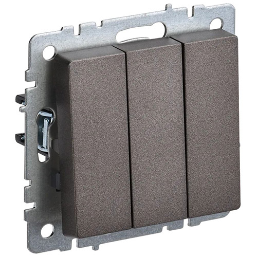 Выключатель трехклавишный IEK ВС10-3-0-БрТБ Brite (10 А, IP20) скрытой установки, темная бронза