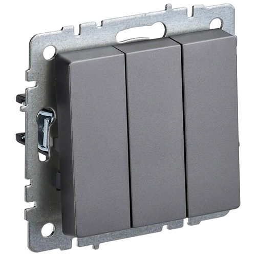 Выключатель трехклавишный IEK ВС10-3-0-БрС Brite (10 А, IP20) скрытой установки, сталь