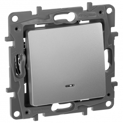 Выключатель одноклавишный Legrand Etika 672403 (10 А, IP20) скрытой установки, с подсветкой, алюминий