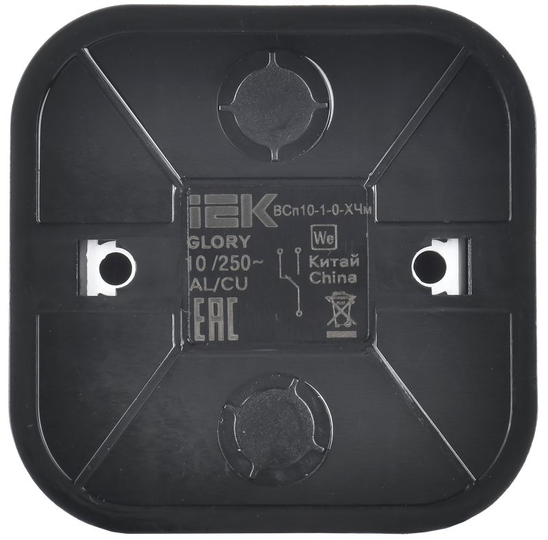 Выключатель одноклавишный проходной IEK ВСп10-1-0-ХЧм Glory (10 А, IP20) открытой установки, черный матовый