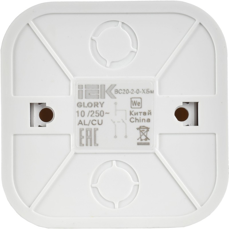 Выключатель двухклавишный IEK ВС20-2-0-ХБм Glory (10 А, IP20) открытой установки, белый матовый
