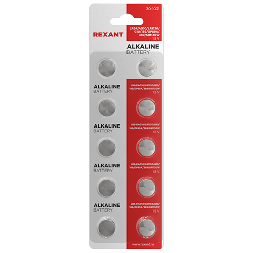 Батарейка алкалиновая LR54 Rexant 30-1031 (1,5 В), 10 шт., блистер