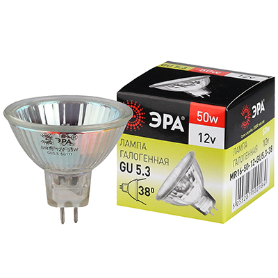 Лампа галогенная GU5.3-MR16-50W-12V-CL "Эра" (софит, 50 Вт, 12 В, 800 лм)