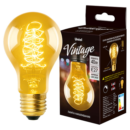 Лампа накаливания Uniel IL-V-A60-40/GOLDEN/E27 CW01 Vintage (А60 груша, E27, 40 Вт, 250 лм)