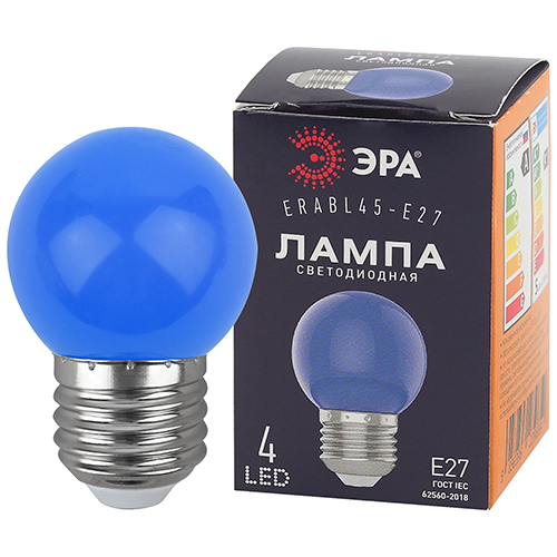 Лампа светодиодная декоративная STD ERABL45-E27 "Эра" (G45, 1 Вт, 10 лм, 3000 К) для гирлянд "Белт-лайт", синий