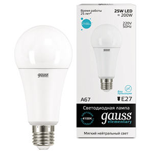 Лампа светодиодная Gauss 73225 Elementary (25 Вт, E27, A67 стандарт, 2100 лм), цвет свечения нейтральный белый