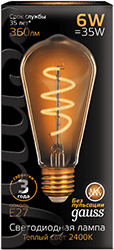 Лампа светодиодная декоративная Gauss LED Filament ST64 Flexible E27 6W Golden 2400К (ST64, 6 Вт, 360 лм), золотистый