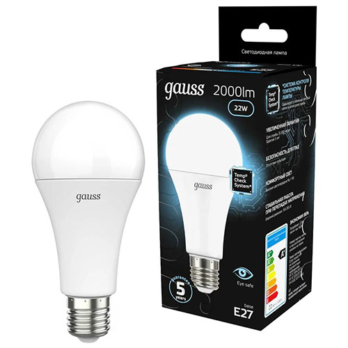 Лампа светодиодная Gauss 102502222 (А70 груша, Е27, 22 Вт, 2000 лм, 4100 К)