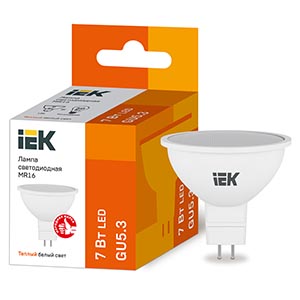 Лампа светодиодная IEK LLE-MR16-7-230-30-GU5 (7 Вт, GU5.3, MR16, 220 В, 630 лм), цвет свечения теплый белый