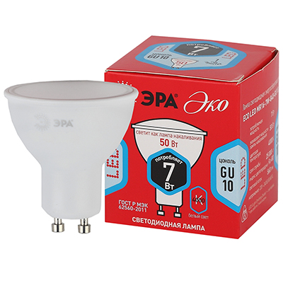 Лампа светодиодная ECO LED MR16-7W-840-GU10 "Эра" (220 В, GU10, 7 Вт, 560 лм, 4000 К)