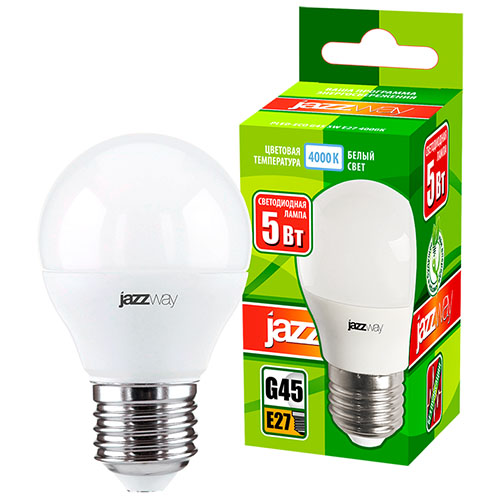 Лампа светодиодная Jazzway PLED-ECO-G45 5w E27 4000K (шар, 400 лм)