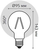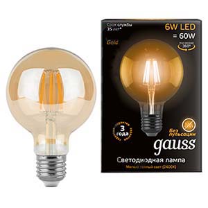 Лампа светодиодная декоративная Gauss LED Filament E27 6 Вт (G95, 550 лм, 2400 К), золотистый прозрачный
