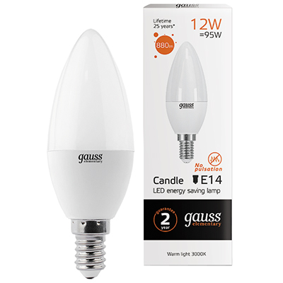 Лампа светодиодная Gauss 33112 Elementary (С37 свеча, 220 В, Е14, 12 Вт, 880 лм, 3000 К)