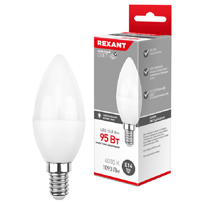Лампа светодиодная Rexant 604-028 (С35 свеча, 220 В, E14, 11,5 Вт, 1093 лм), цвет свечения нейтральный белый