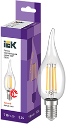 Лампа светодиодная CB35 7 Вт "свеча на ветру" IEK (Е14, 230 В, 840 лм, колба прозрачная, 360°), цвет свечения теплый белый