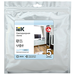 Лента светодиодная IEK LSR-2835W60-4,8-IP20-12В Standard (12 В, SMD 2835, 4,8 Вт/м, 60 led/м, IP20), цвет свечения холодный белый