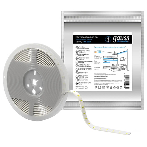 Светодиодная лента Gauss серии Elementary предназначена для общего освещения помещений, подсветки рабочих поверхностей и декоративного контурного освещения.