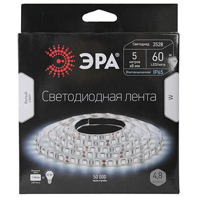 Лента светодиодная LS3528-60LED-IP65-W-5m "Эра" (12 В, 4,8 Вт/м, 60 led/м), цвет свечения холодный белый