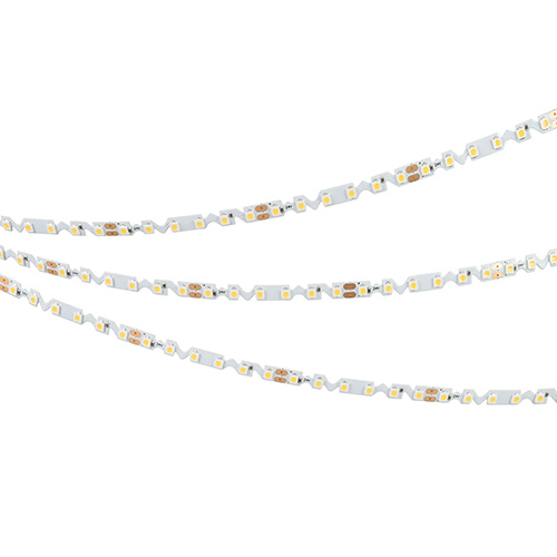 Гибкие ленты Arlight серии RZ A120 обладают фигурной платой в форме волны, благодаря чему их можно сгибать в горизонтальной плоскости.