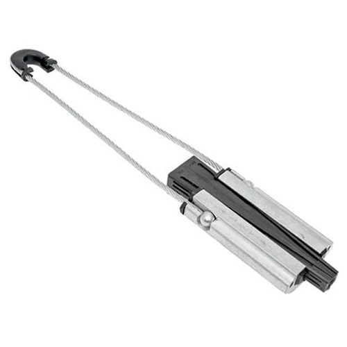 Зажим оснащен тросом из нержавеющей стали, обеспечивает необходимое натяжение провода в анкерном пролете линии.