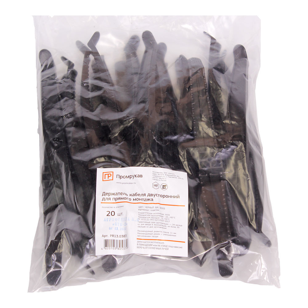 Держатель кабеля двусторонний "Промрукав" PR13.0383 (пластик) на 16 мест, для прямого монтажа, черный
