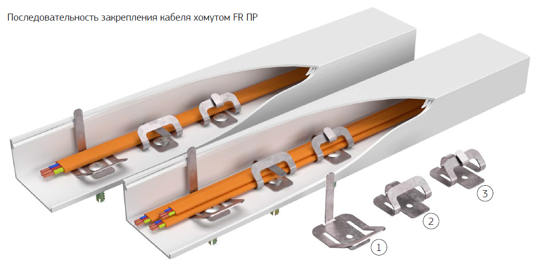 Может применяться для монтажа кабеля обычного назначения открытым способом на горизонтальных и вертикальных поверхностях.