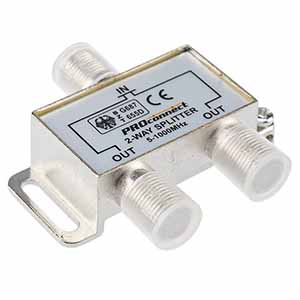Сплиттер имеет два выхода для сигнала, подключается с помощью стандартных F-разъемов.