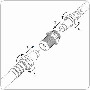 Соединение кабеля производится методом накрутки F-коннектора с обеих сторон после соответствующей зачистки контактов.