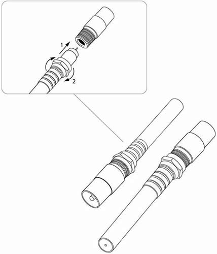 Соединение кабеля производится методом накрутки F-коннектора, после соответствующей зачистки контактов радиочастотного кабеля. Какие-либо специальные инструменты для монтажа не требуются. |