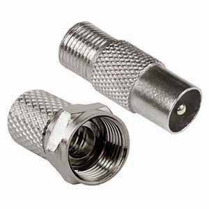 - Переходник "гнездо F - штекер TV" предназначен для подключения эфирного, спутникового и кабельного телевидения с помощью радиочастотного кабеля волновым сопротивлением 50 или 75 Ом.