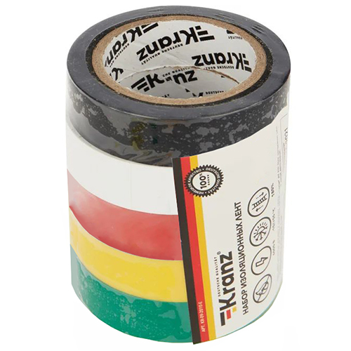 Изолента ПВХ 19 мм х 20 м Kranz, набор 5 шт., 5 цветов